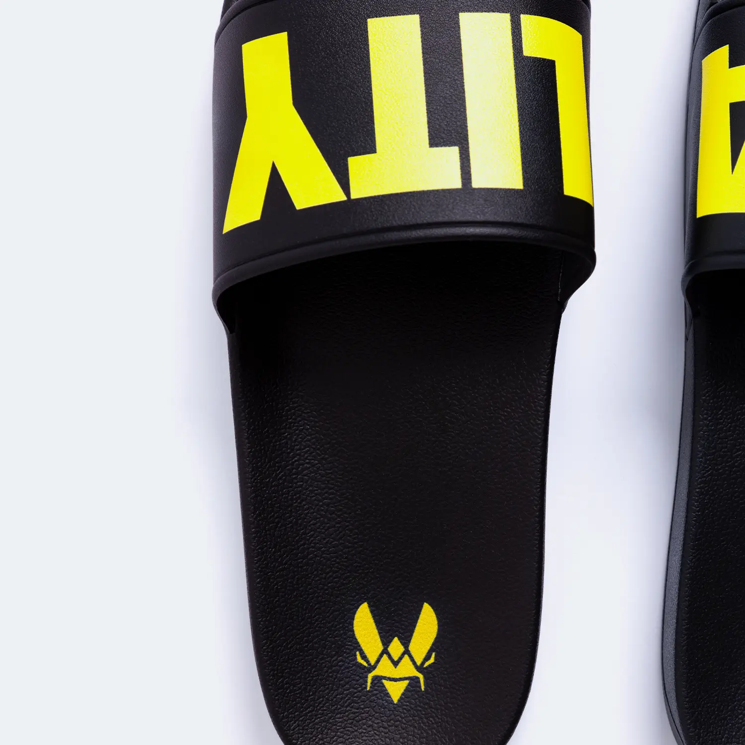 Noires et jaunes, elles reprennent nos couleurs et incarne l’esprit de Team Vitality. Son design basique comporte l'inscription "Vitality", répartie sur chaque claquette, ainsi que le logo Team Vitality présent sur chacune des deux.