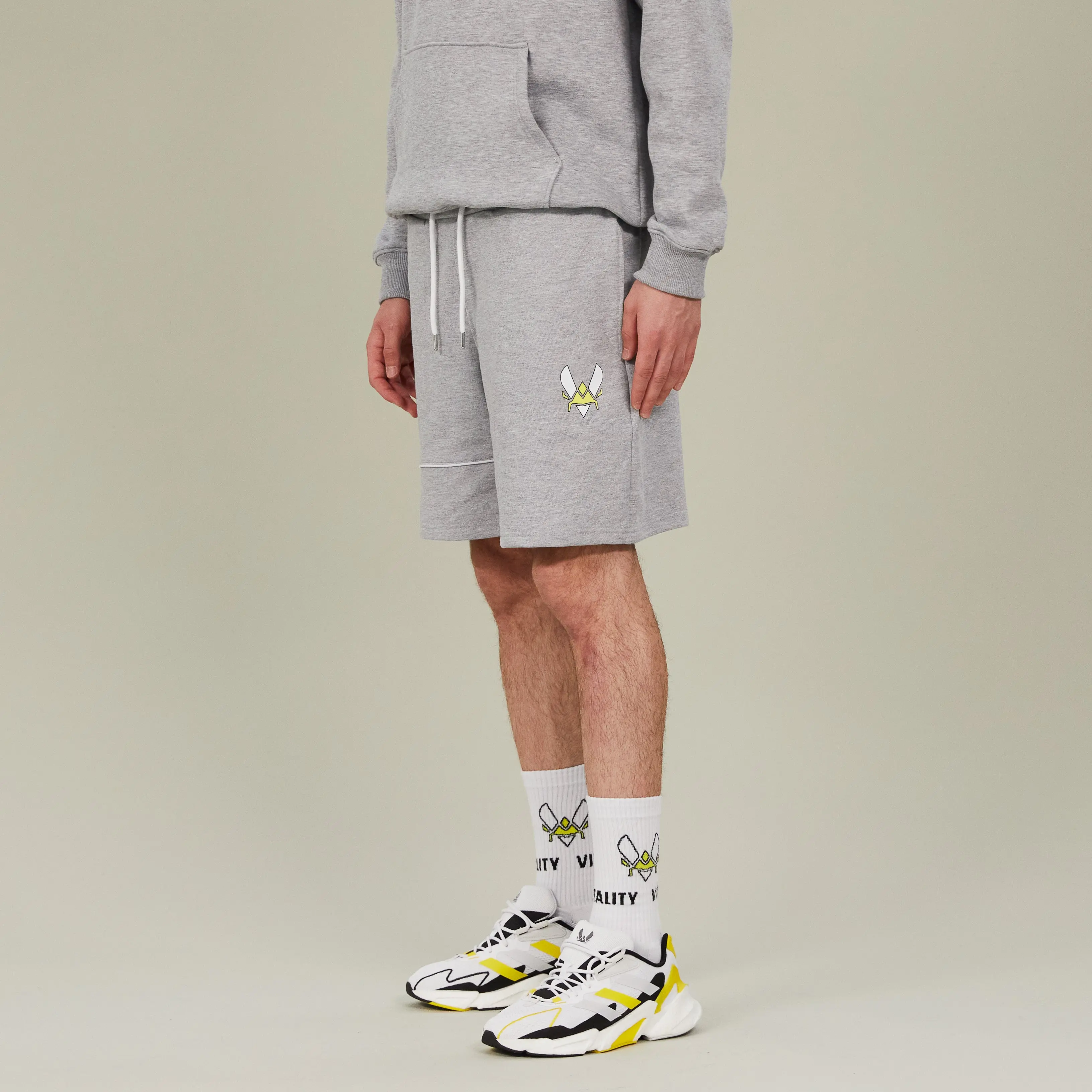 Ce short basique gris est un indispensable du vestiaire décontracté ! Sa matière coton, ses poches invisibles et sa taille élastique avec cordon de serrage t'assurent un confort et une liberté de mouvement optimal au quotidien. Sublimé par un imprimé du logo Team Vitality, ce short est idéal à porter dans les stades du monde entier, comme dans ta chambre devant une compète sur Twitch.